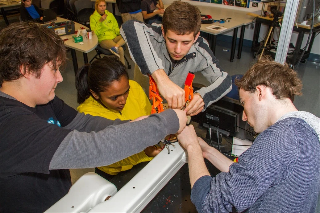 To learn about design for manufacturing and iterative design, the Mechanical Prototyping class at Olin builds underactuated hands - mechanical hands that are capable of adjusting to the object they are grasping. You can learn more about the full class at the class’ website.